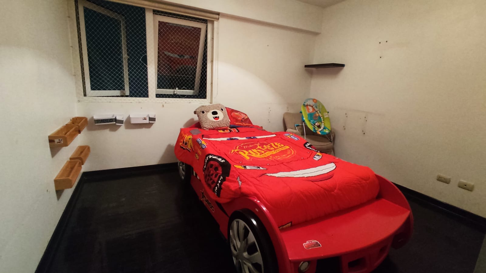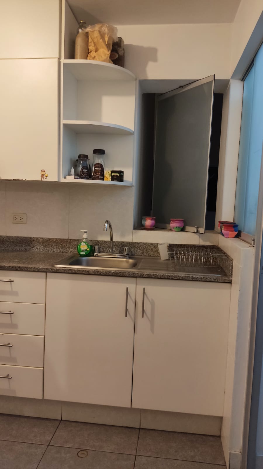 Consta de 2 dormitorios con closet altos y de pared a pared, el dormitorio principal con baño completo y tina con hidromasajes, sala comedor, baño de visita, baño completo de servicio, cocina con reposteros altos y bajos, mesa de granito campana extractora, terma, piso de madera chonta en la sala, porcelanato en baños y cocina, 10 años de antigüedad